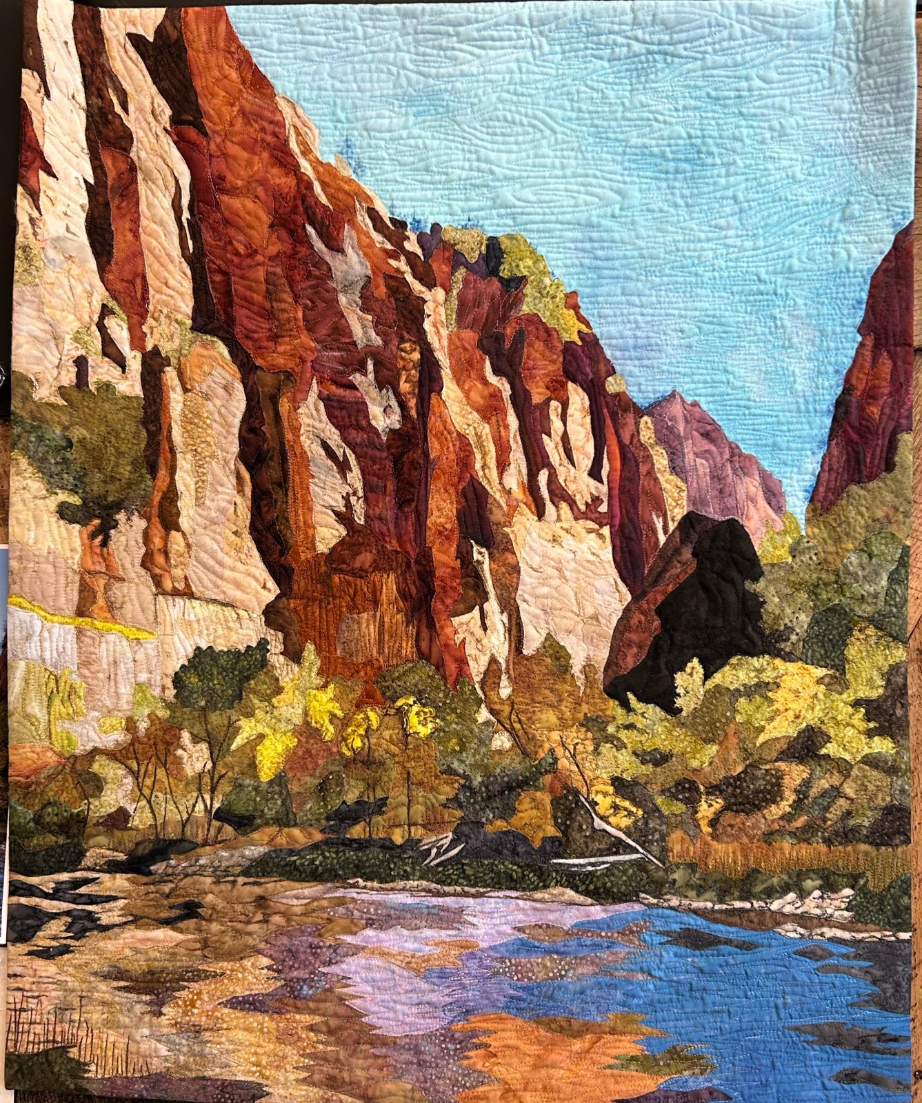 - A variety of thread colors for quilting to complement your landscape fabrics. I use primarily embroidery threads because of the fine quality and array of colors. Thickness doesn’t matter.